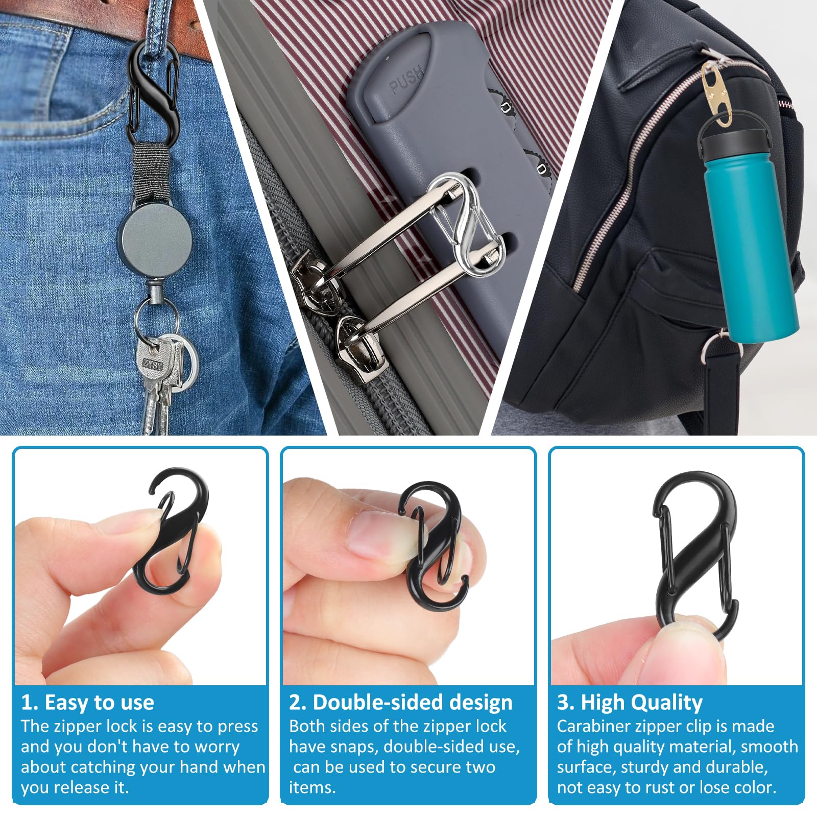 - Higher Quality: Our zipper clips anti-theft are made of high-quality zinc alloy, smooth, durable, and won't lose color. It can be a perfect solution to the problems you encounter in your life.