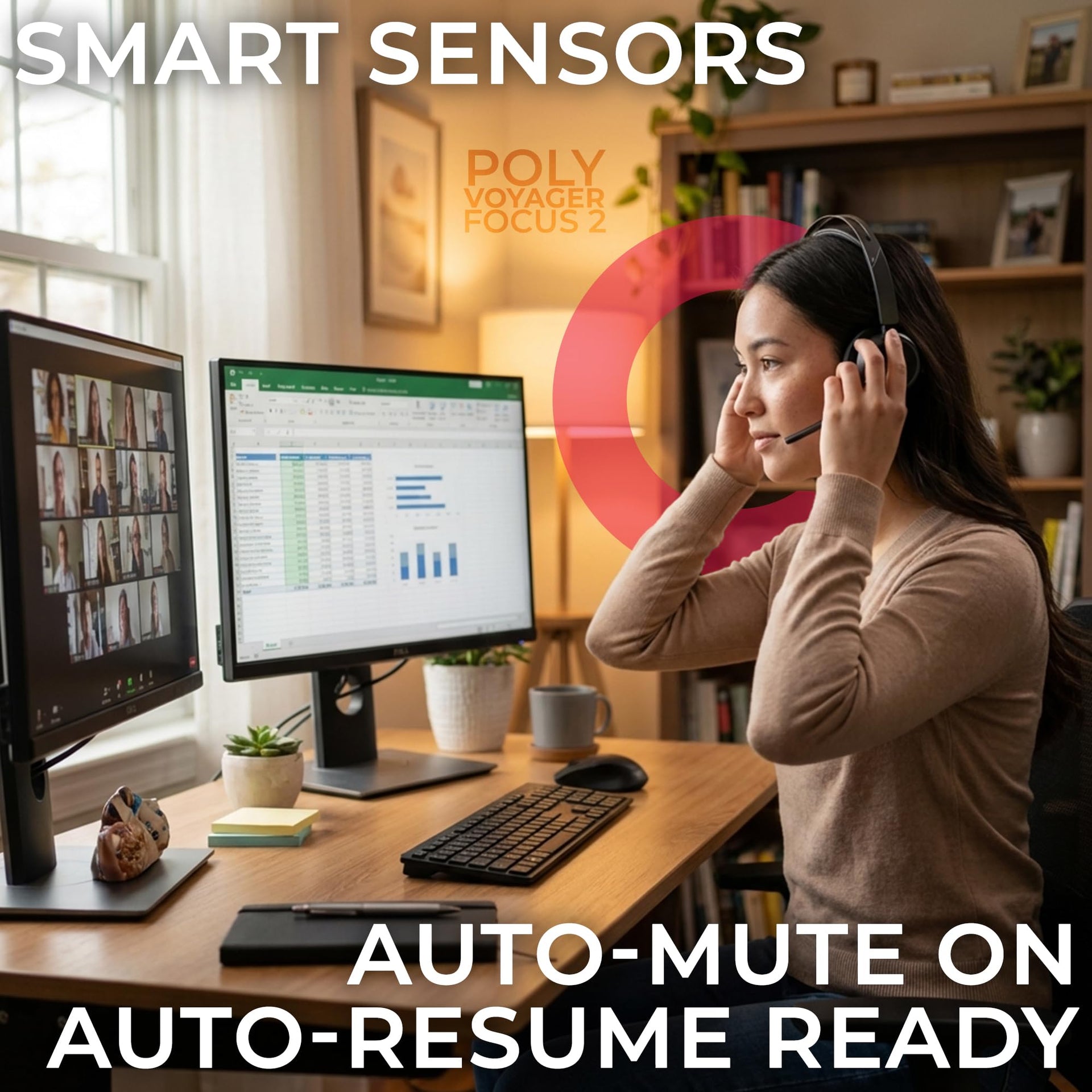 Poly Voyager Focus 2 UC Bluetooth Wireless Headset, USB-C, Connects to Deskphone, PC, Mac, Cellphone Work Calls - Compatible with Teams, Zoom…