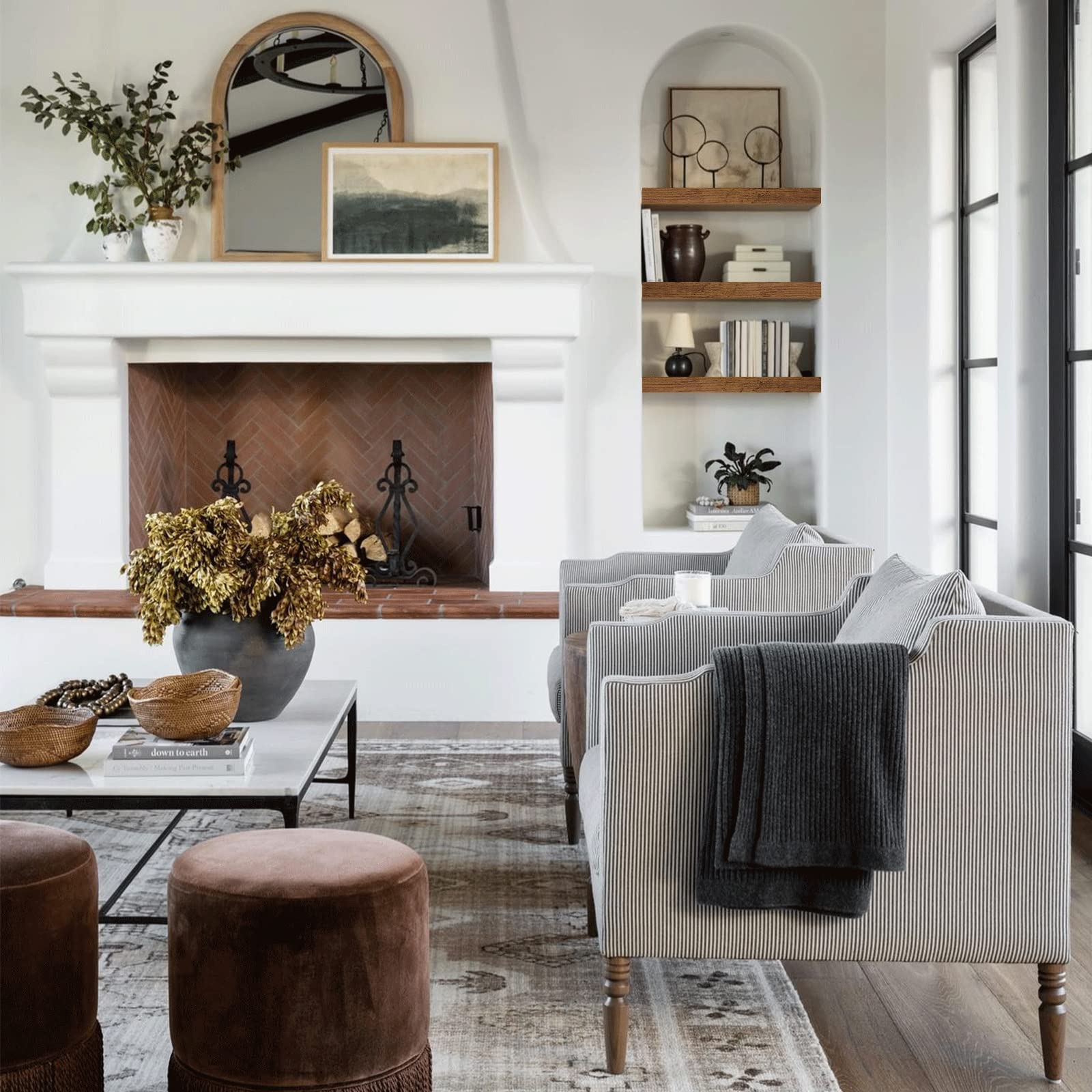 - Invisible Bracket: Farmhouse vibe fill in empty wall space above a desk, fireplace, entryway, vanity, between windows. Put succulent plants, collectibles small items