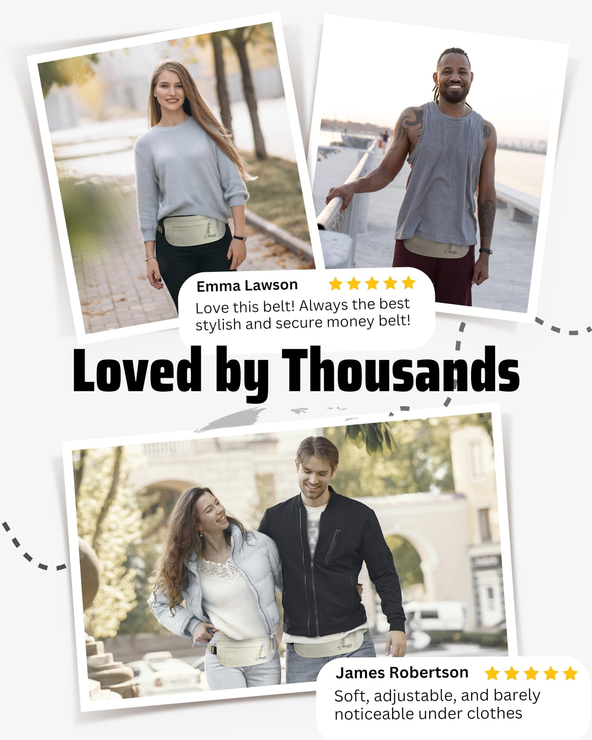 - ADJUSTABLE & SECURE FIT FOR ALL BODY TYPES – Featuring a reinforced, high-quality buckle and adjustable strap (fits 26" to 50" waists), this money belt stays in place without bouncing or shifting. Designed for all travelers, this money belt for men and women provides a secure, comfortable alternative to bulky purses or wallets.