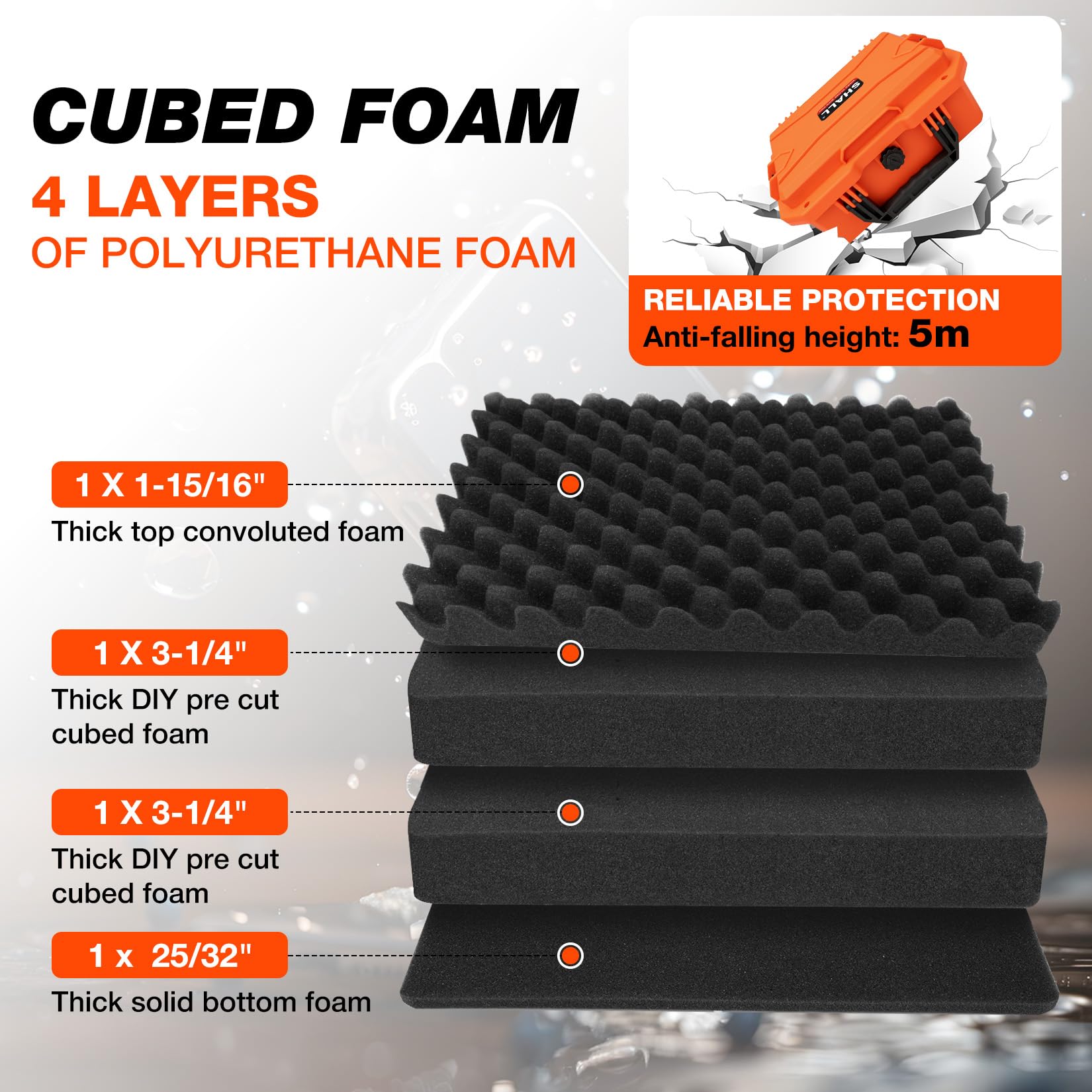 • Foam Customization: 2 X 3-1/4” thick DIY pre-cut cubed foam inside for double protection. It’s easy to customize foam without using knife, shape the size what you want for your equipment