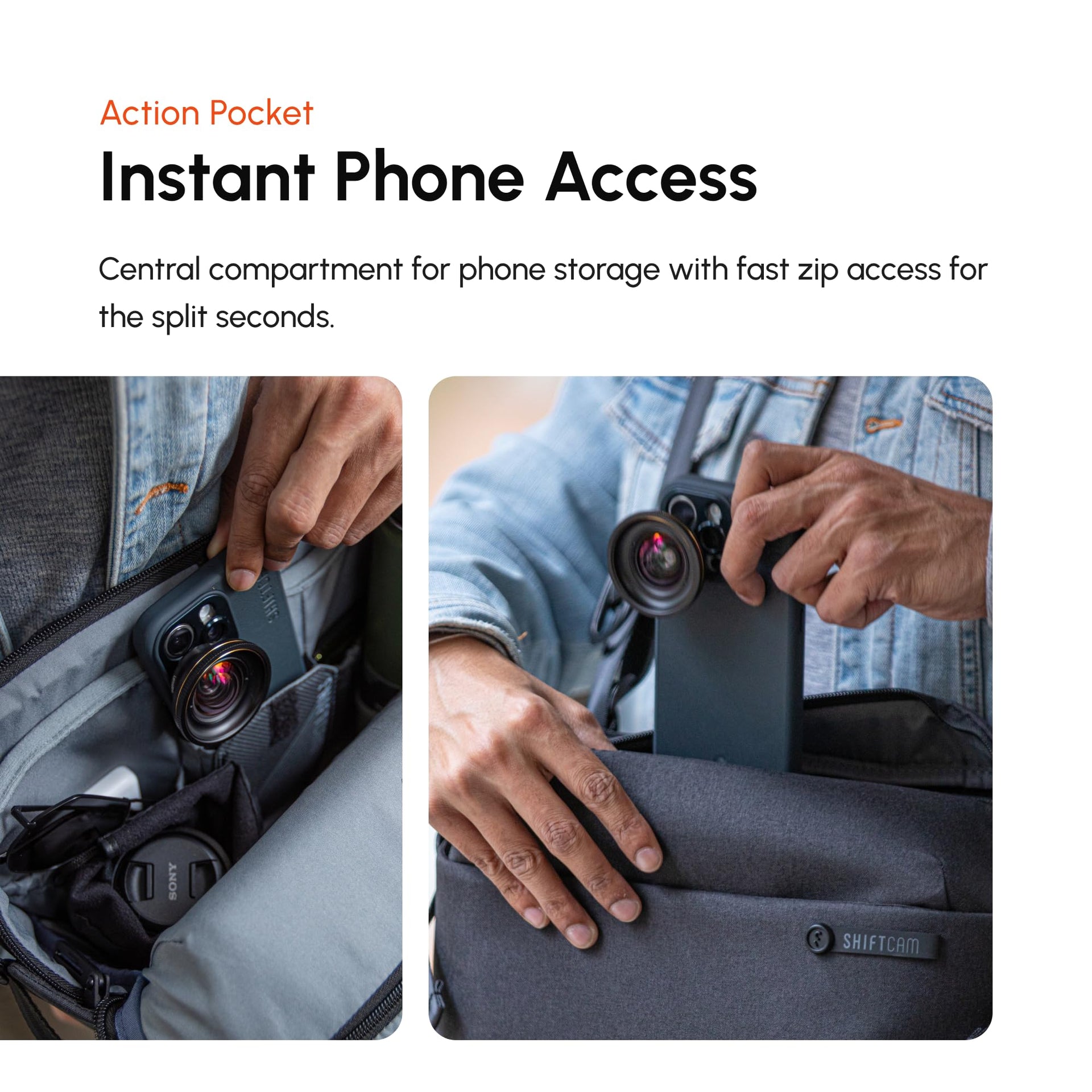 • FAST PHONE ACCESS - Never miss a moment with the quick-access phone compartment. The intuitive zip design keeps your phone within reach, ready for instant setup and shooting.