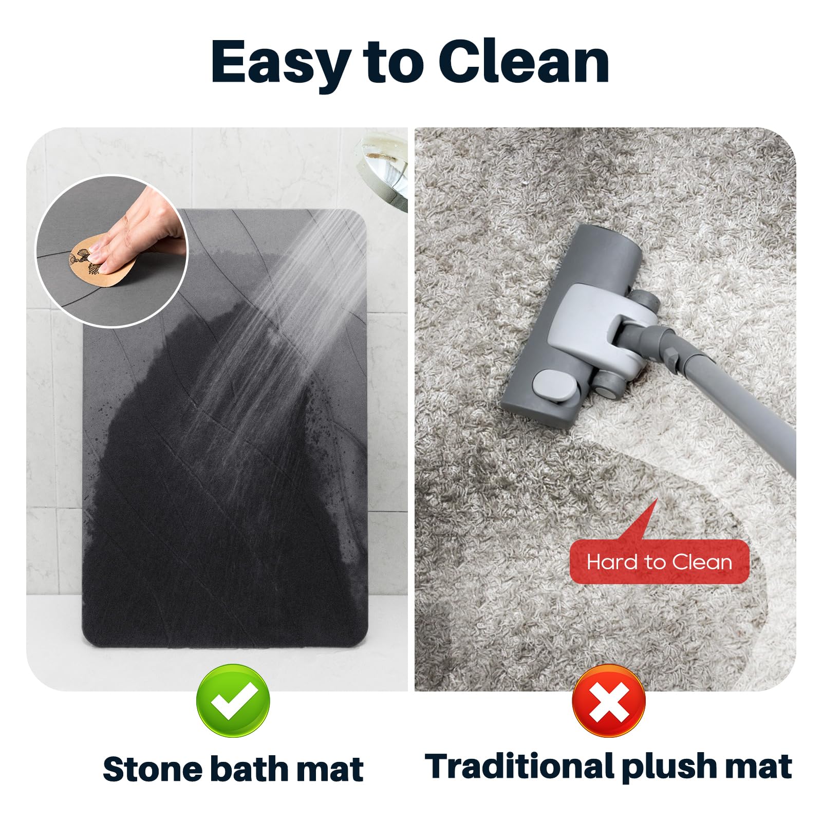 Stone Bath Mat for Bathroom, Diatomaceous Bathroom Mats Non Slip Stone, Quick Dry Diatomaceous Earth Bath Mat Super Absorbent (Dark Grey)