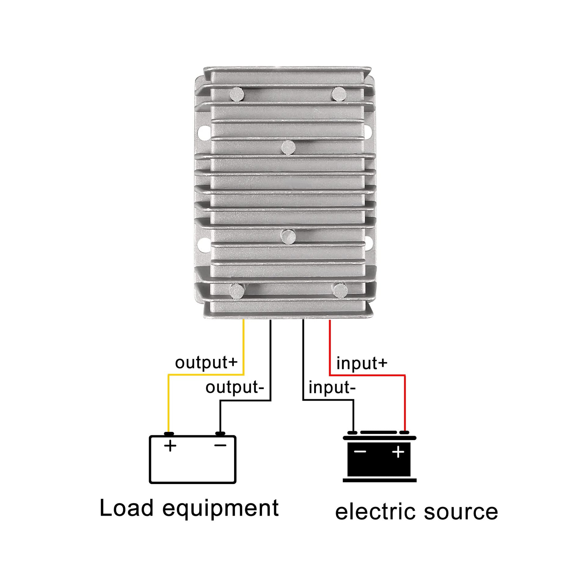 • Note: It is recommended to use stable DC power for the input power supply If you use the pulsed DC power provided by the generator, please filter it with capacitor before connecting it to the converter. If you use solar panel to supply directly, please note that the open circuit voltage of the solar panel cannot exceed the maximum withstand voltage of the converter. The supply voltage should be within the rated voltage and always leave a certain margin.