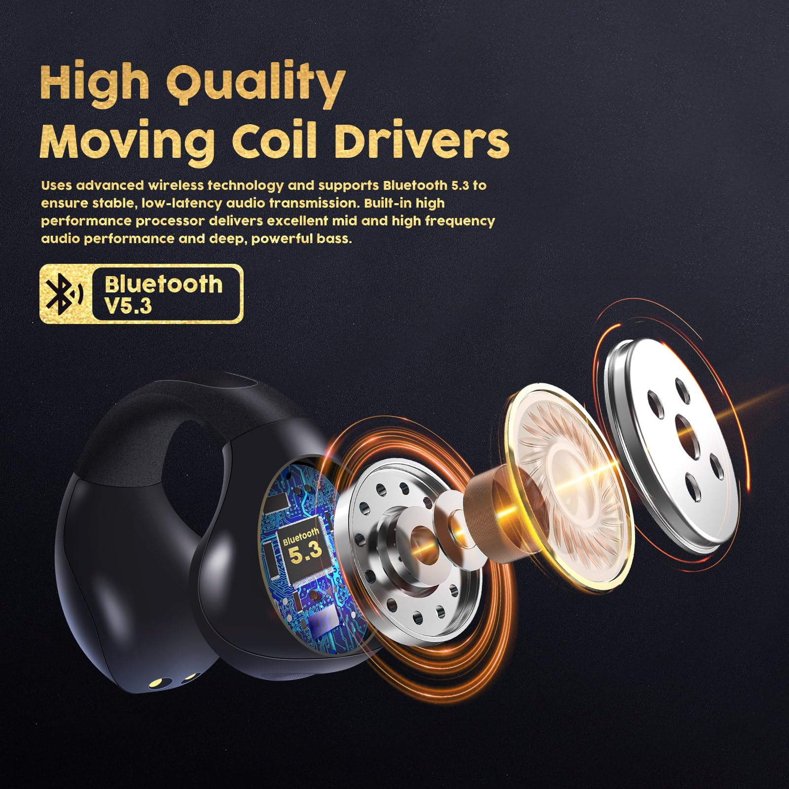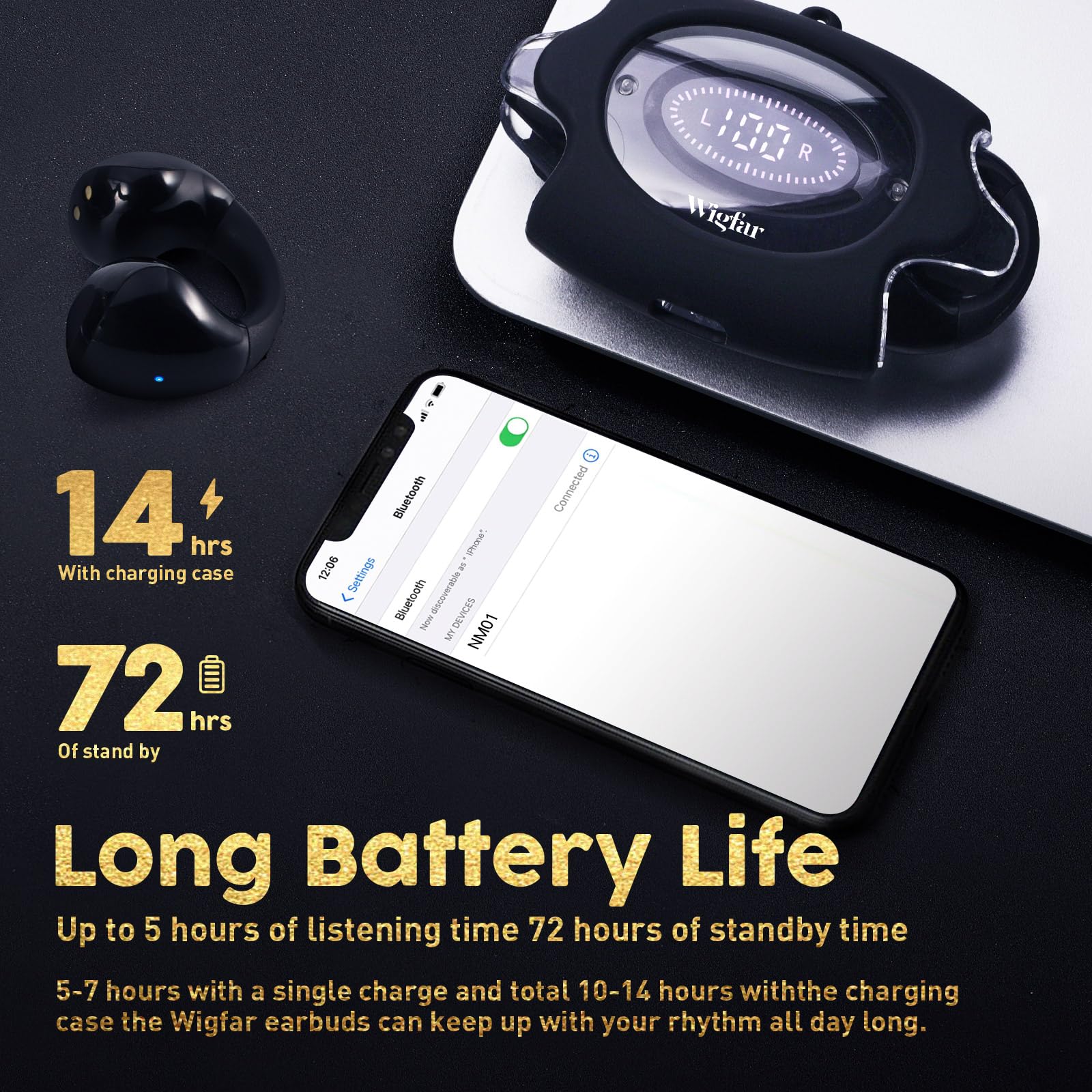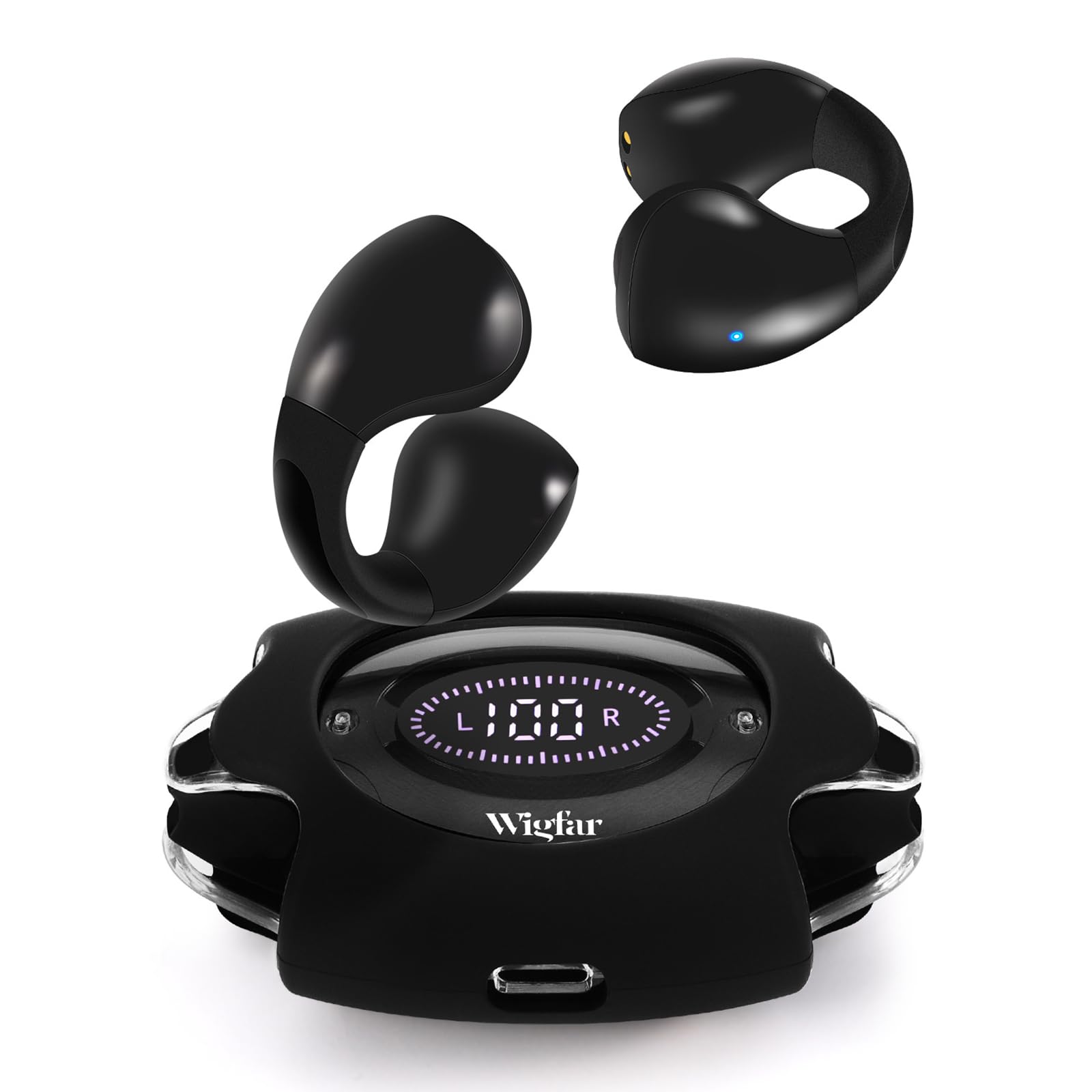 Wigfar Open Ear Headphones True Wireless Bluetooth Headphones, Ear Clip Earbuds, Sweat Resistant, Fast Charging, 24HRS Playtime, Open Ear Earbuds…