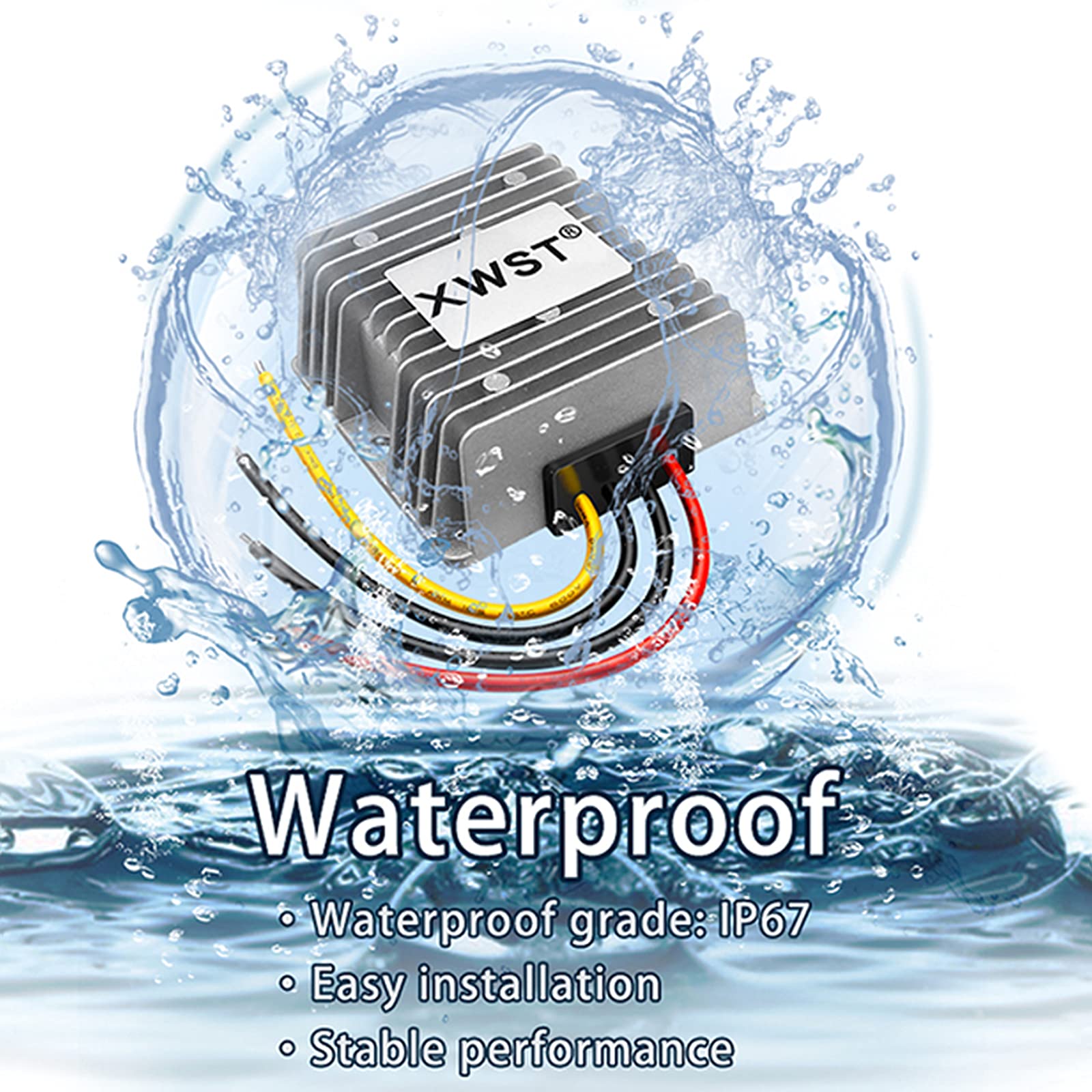 • 【IP67 Waterproof】Compact aluminium shell with epoxy potting, 100% waterproof, anti-dust, anti-shock protection and better heat dissipation These voltage converters are excellent power transformers, can work safely and reliable in -40°C~80°C range.