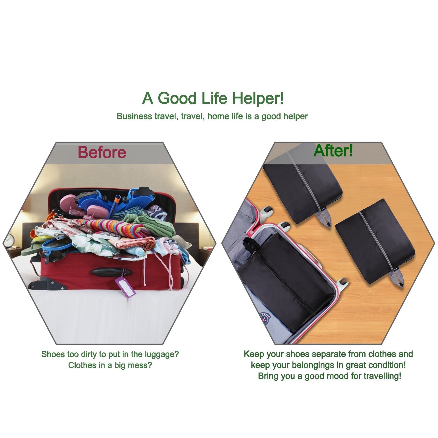 - 【Great for travelling】Good design for home and travel use. Great fortraveling, carrying shoes to & from the gym, or for keeping your shoes dustfree in the closet. ( Can also be used as makeup bag, toiletries bags and forother uses.) [Waterproof Material] Nylon